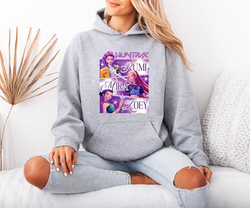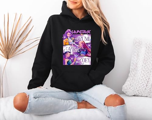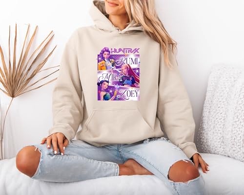 • Huntrix Hoodie with Fantasy Graphic Design – Features bold artwork inspired by the fictional Demon Pop Hunters movie, blending animation, music, and futuristic adventure themes