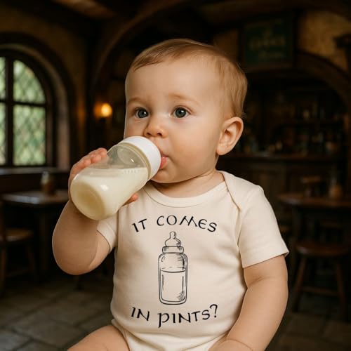 It Comes In Pints Onesie – 100% Cotton -Cream Color (Cream, 3-6 Month)