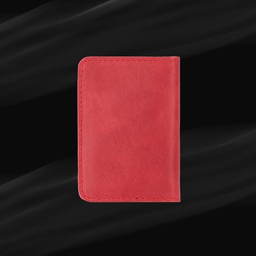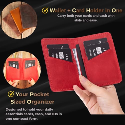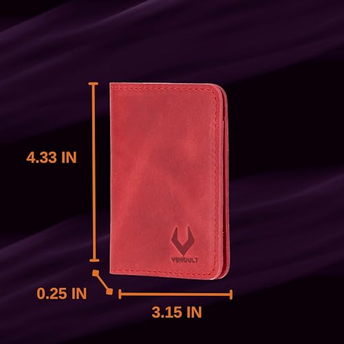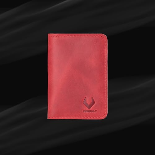 VENOULT Genuine Leather, Bi-fold Card Holder, Wallet with 4 Credit Card and 2 Cash Slots for Man or Women, (4.3 x 3.1 x 0.25 in), Slim Minimalist Design, Handcrafted (Cranberry Red)
